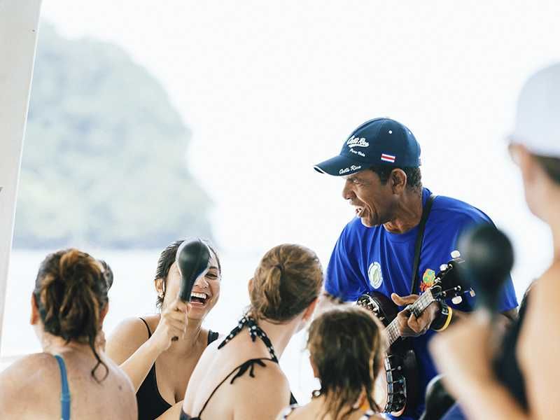 La visita de la mañana incluye una aventura de buceo de estilo libre en una hermosa y apartada bahía conocida como Playa Biezans. El tour de la tarde es un viaje verdaderamente increíble para los amantes de la naturaleza que pueden disfrutar no solo la experiencia en sí, pero la impresionante puesta de sol en el Océano Pacífico. Donde podrá apreciar la ballena jorobada (en temporada), delfines y la bella vida salvaje marina. A bordo ofrecemos una excelente selección de aperitivos y jugos naturale. No importa si con toda tu familia, solo o en un grupo de amigos, asegúrese de no perderse esta experiencia única y memorable.Diviértete con un espectáculo de música en vivo.